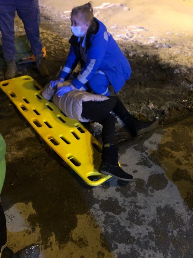 交差点を曲がった三菱は歩行者をはね、電柱に衝突しました。怪我を負った女性は病院へ搬送されました。運転手に怪我はありませんでした。目撃者によると車を運転していた男は酒を飲んでいるようであったとのことです。
