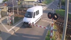 [動画0:26] 横断歩道で停止する車を避けたバイク、トラックに突っ込む