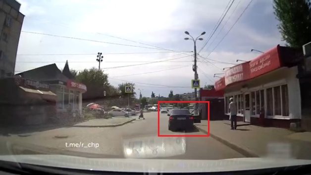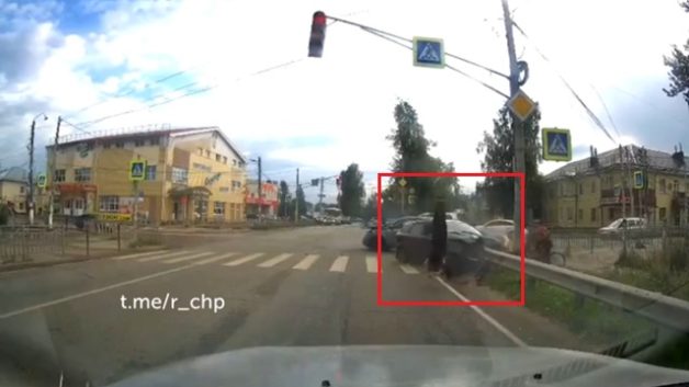交通事故 [動画0:45] 運悪すぎ・・・、交差点事故に巻き込まれた歩行者