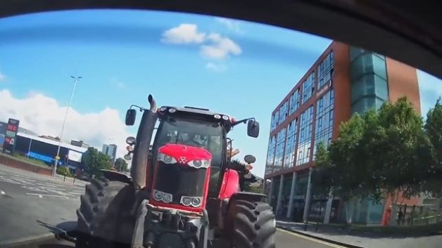 交通事故 [動画0:18] あおり運転してくるトラクターが怖すぎる
