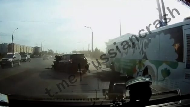 交通事故 [動画1:00] RAV4乗り、バスに特攻