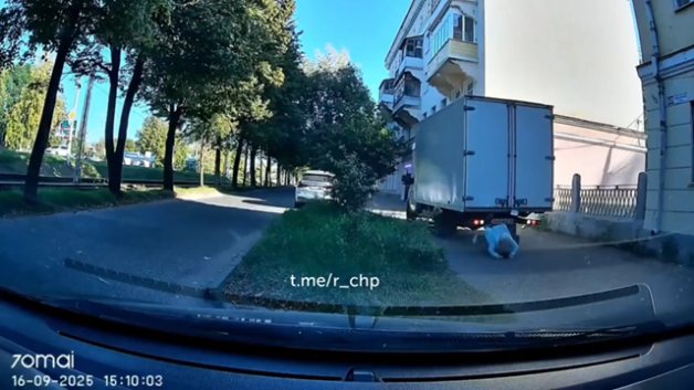交通事故 [動画0:10] 自転車に乗っていた2歳の少女、ダンプカーに押し倒される