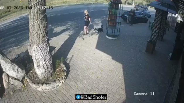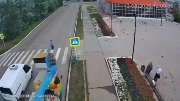 交通事故 [動画0:27] 歩道に立っていた女性、勢いよくトラックに倒される