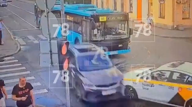 交通事故 [動画0:10] ただ歩いていただけの男性、事故に巻き込まれる