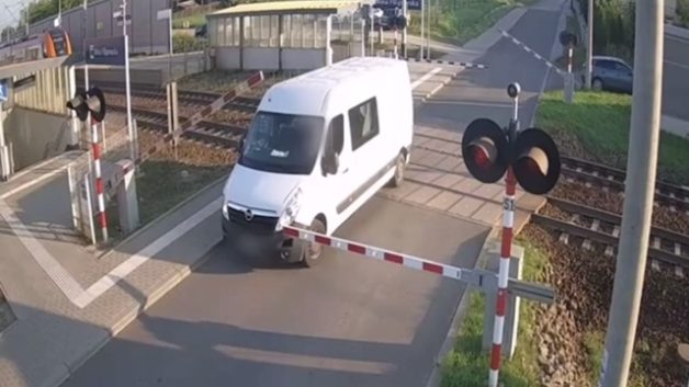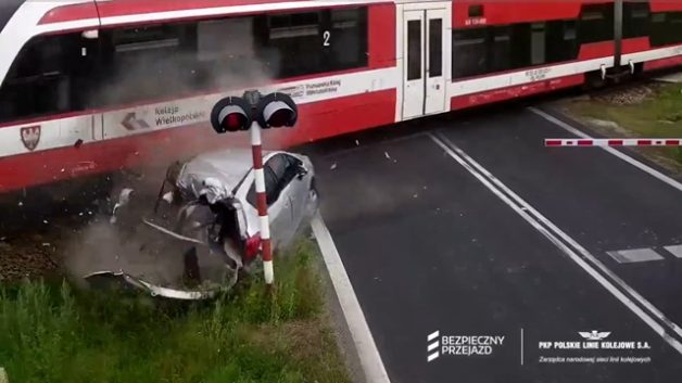 交通事故 [動画1:09] ライダーさん、遮断機を破壊して踏切に突っ込む